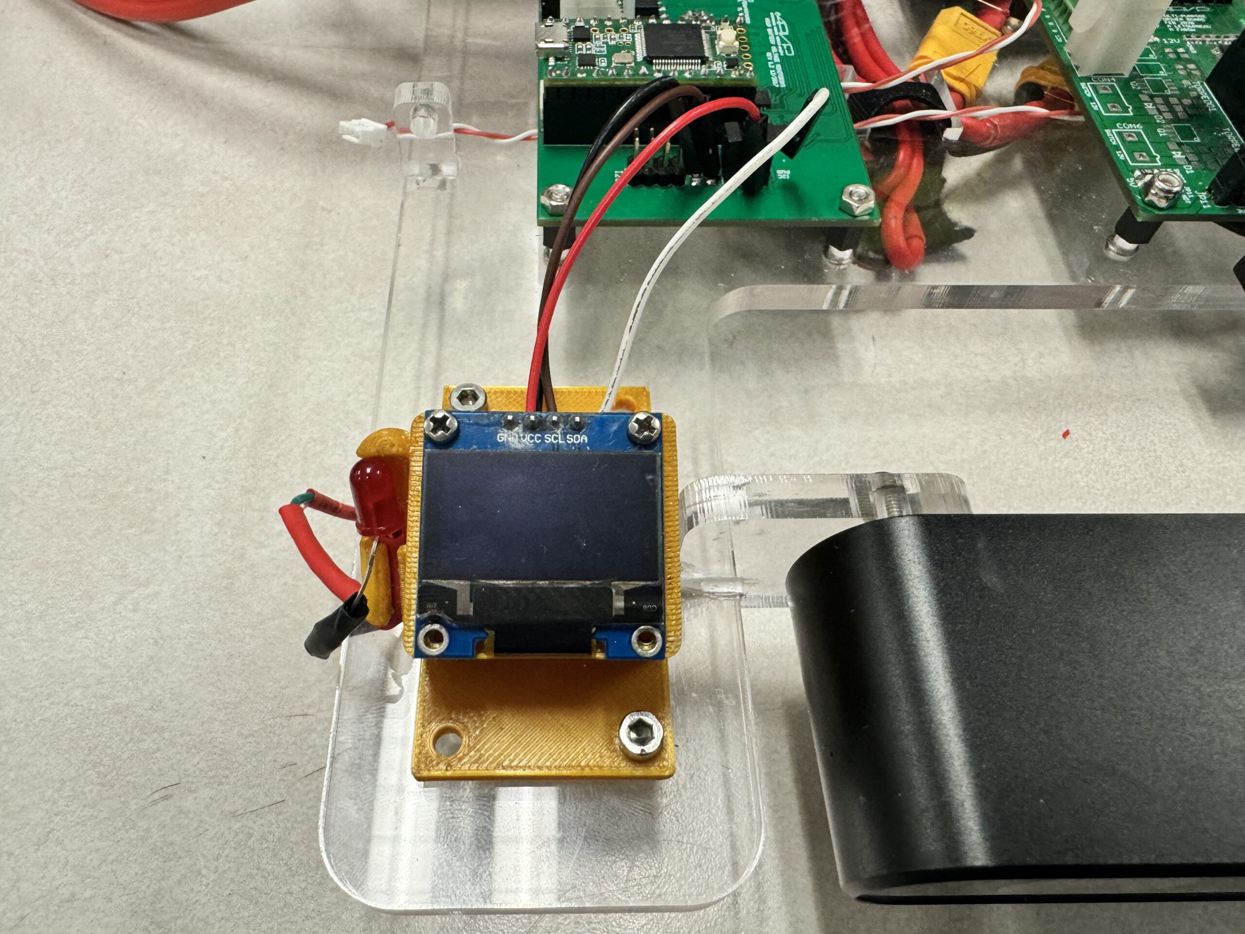 In past years, ARVP’s AUVs had no direct method to display information. Consequently, it was the software team's duty to monitor battery voltage, internal pressure, and other critical information. Eventually, this led to missed information that jeopardized key pool tests. To mitigate this, Arctos has OLED screens that act as a visual aid in the monitoring of the robot's internal environment to ensure everything is secure and functional before submerging the AUV. As of RoboSub 2023, we had one OLED screen that we utilized to monitor only temperature and pressure. This served us well in ensuring sufficient thermal management and monitoring pressure as our mechanical team conducted pressure tests before pool tests and competition. However, our display information did not allow us to ensure all systems were plugged in and receiving power. With this issue in mind, we developed a second OLED display to confirm that all electronics are connected correctly, including servos and individual batteries. This is a huge aid when wiring the robot before pool tests as the electrical assembly is quite complex.
