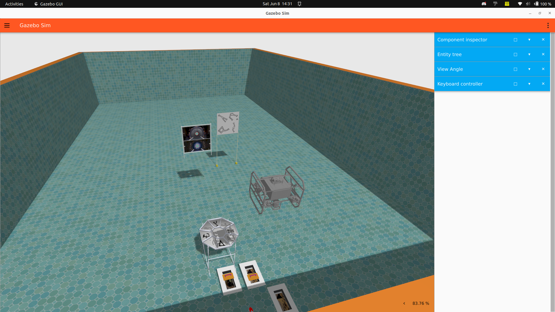 The simulator is built on top of Gazebo with custom plugins to simulate the hydrodynamics of the robot, control thrusters and actuators on the robot, and generate mock sensor data to interface with the rest of the software stack. Gazebo gives us the flexibility to quickly modify plugins, models, and worlds when needed, while also being tightly integrated with ROS2. For RoboSub 2023, the simulator was only able to emulate robot movement.