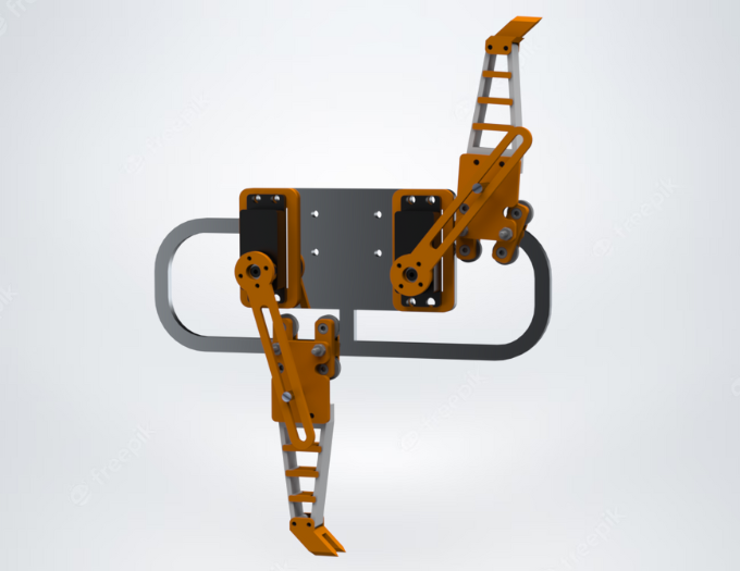 Utilizes a parallel plate claw mechanism with a soft gripper design for ease of software integration and robust manipulation of complicated geometries. The grippers were made compliant using a combination of 3D printed flexible TPU and rigid resin; the tapered wedge shape causes the gripper to curve around the object as it’s closing